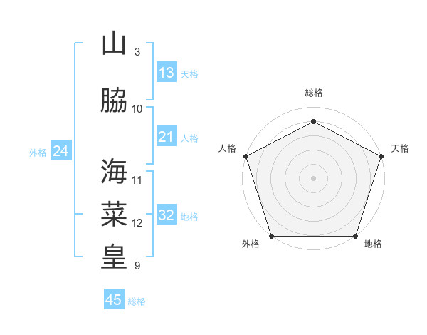 山脇 海菜皇さんを姓名の画数から五運を鑑定