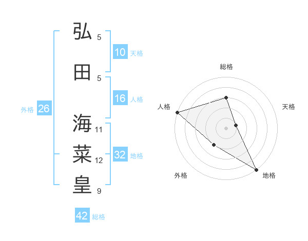 弘田 海菜皇さんの外格は26画の2点!
