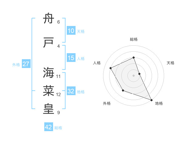 舟戸 海菜皇さんを姓名の画数から五運を鑑定