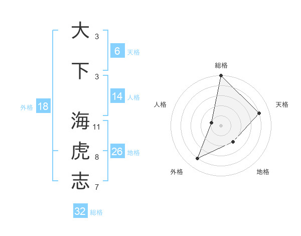 大下 海虎志さんを姓名の画数から五運を鑑定