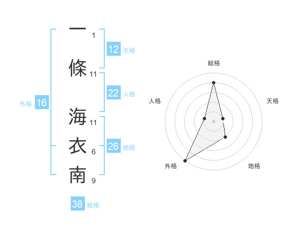 一條 海衣南さんを姓名の画数から五運を鑑定