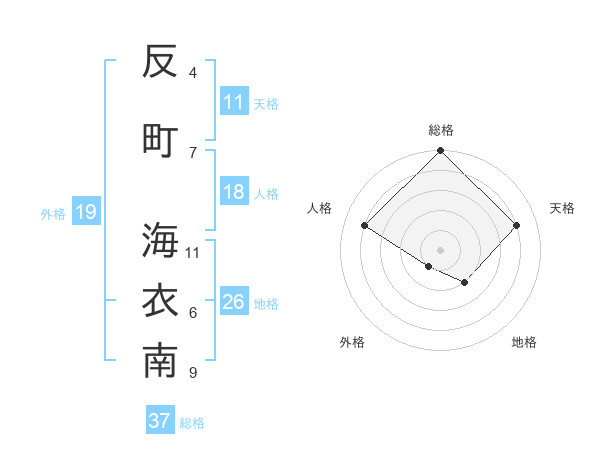 反町 海衣南さんの総格は37画の5点!