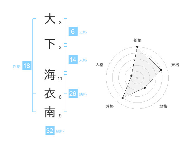 大下 海衣南さんを姓名の画数から五運を鑑定