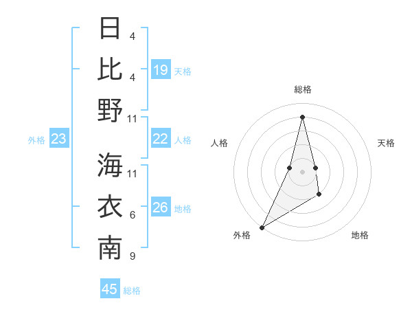 日比野 海衣南さんを姓名の画数から五運を鑑定