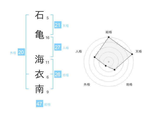 石亀 海衣南さんを姓名の画数から五運を鑑定