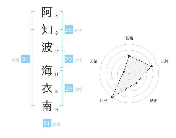 阿知波 海衣南さんを姓名の画数から五運を鑑定