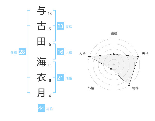 与古田 海衣月さんを姓名の画数から五運を鑑定
