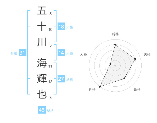 五十川 海輝也さんの天格は18画の4点!