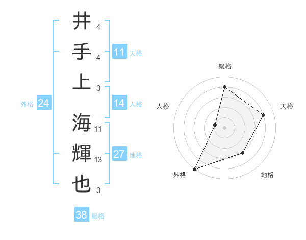 井手上 海輝也さんを姓名の画数から五運を鑑定