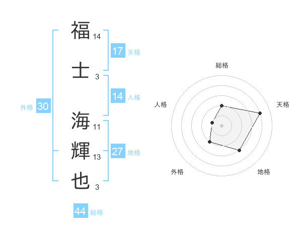 福士 海輝也さんを姓名の画数から五運を鑑定