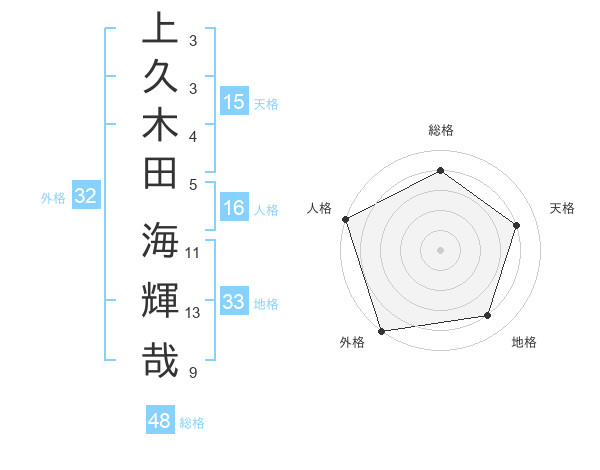 上久木田 海輝哉さんを姓名の画数から五運を鑑定