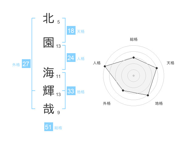 北園 海輝哉さんを姓名の画数から五運を鑑定