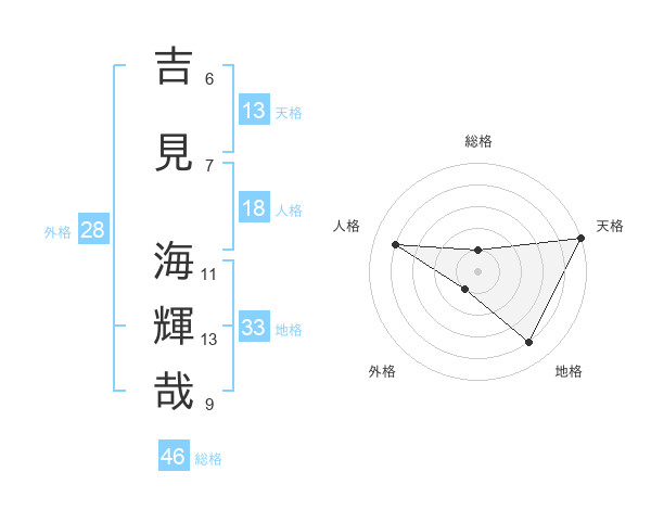 吉見 海輝哉さんを姓名の画数から五運を鑑定