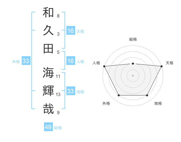 和久田 海輝哉さんの天格は16画の5点!