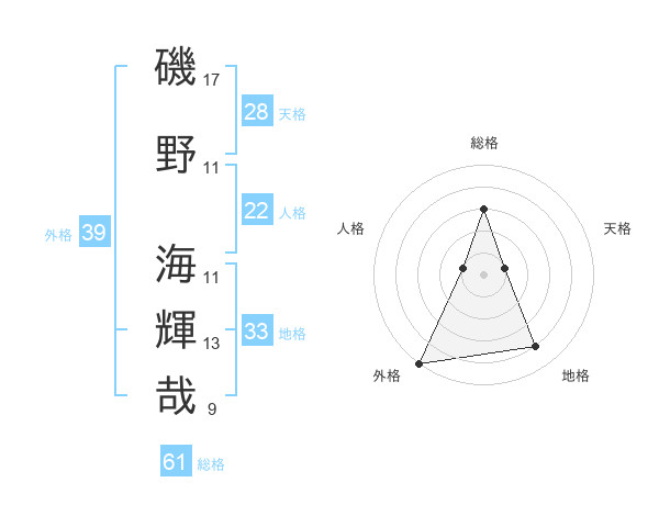 磯野 海輝哉さんを姓名の画数から五運を鑑定