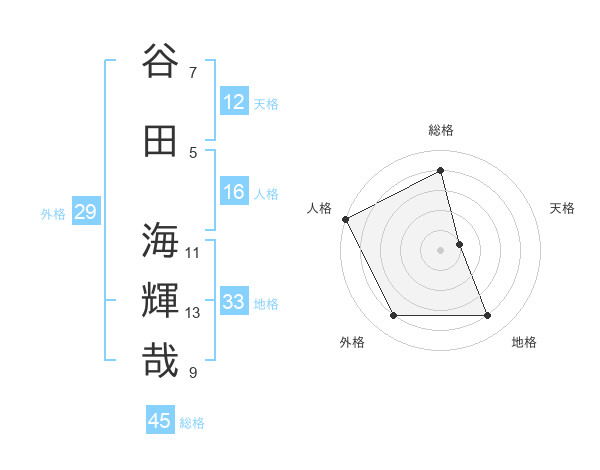 谷田 海輝哉さんを姓名の画数から五運を鑑定