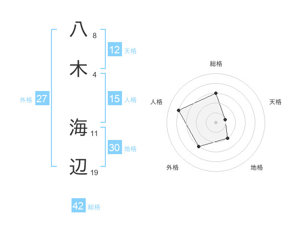 八木 海辺さんの総格は42画の3点!