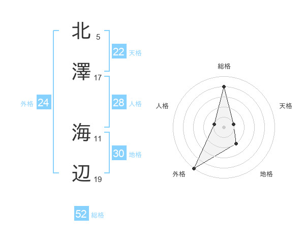 北澤 海辺さんを姓名の画数から五運を鑑定