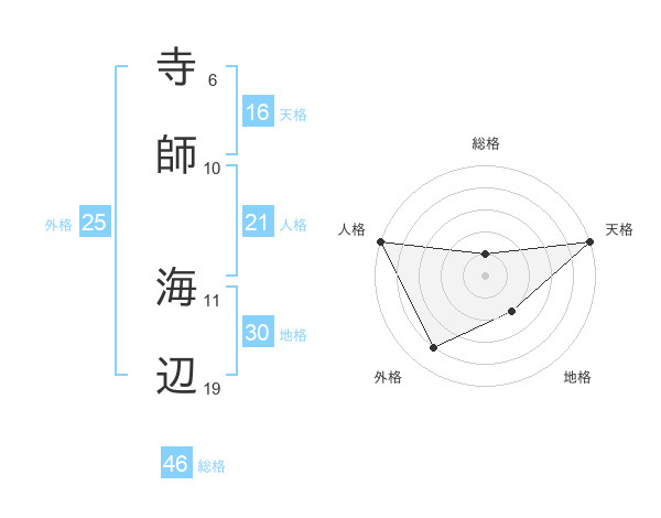 寺師 海辺さんの天格は16画の5点!