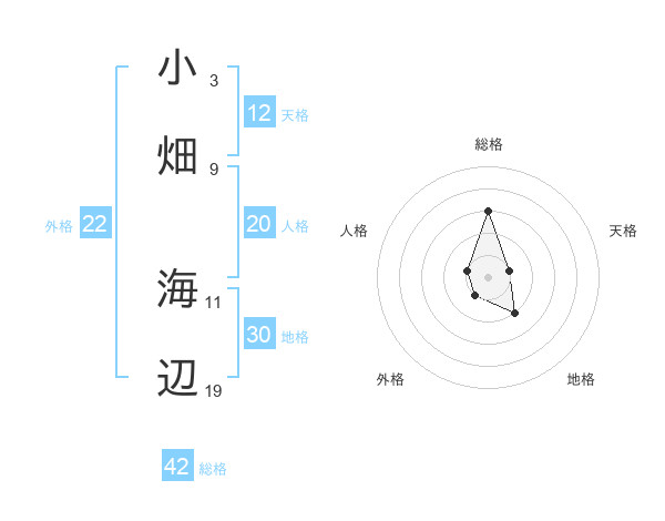 小畑 海辺さんを姓名の画数から五運を鑑定