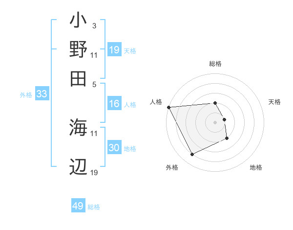 小野田 海辺さんを姓名の画数から五運を鑑定