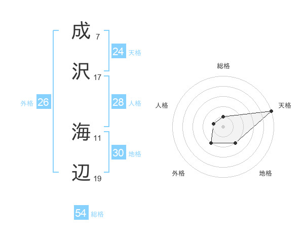 成沢 海辺さんを姓名の画数から五運を鑑定