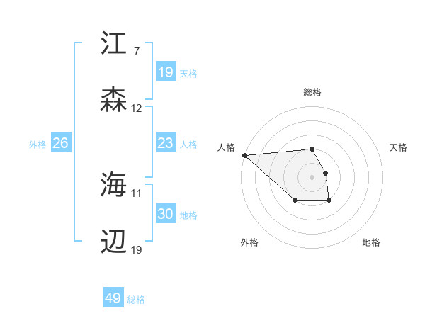 江森 海辺さんの総格は49画の2点!