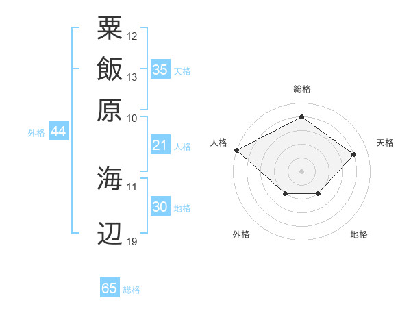 粟飯原 海辺さんを姓名の画数から五運を鑑定