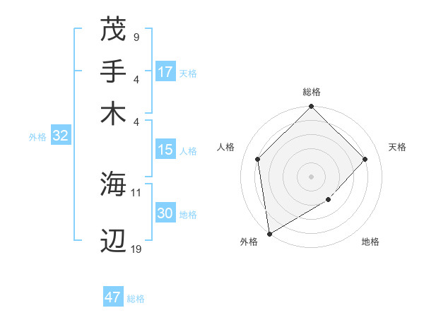 茂手木 海辺さんの総格は47画の5点!