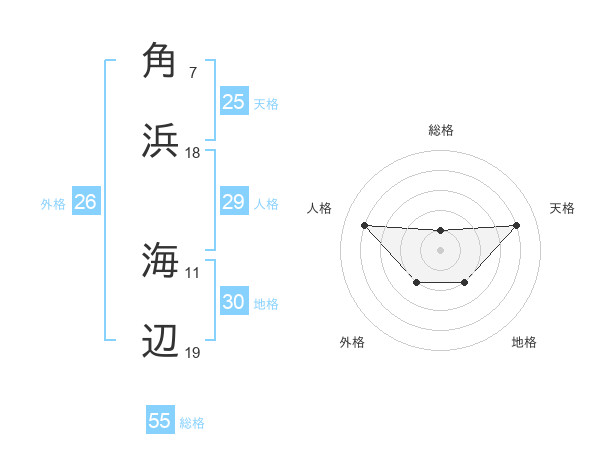 角浜 海辺さんの総格は55画の1点!
