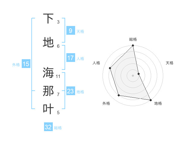 下地 海那叶さんを姓名の画数から五運を鑑定