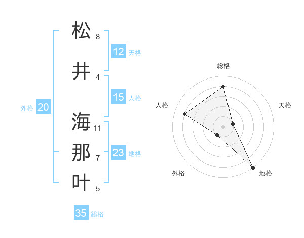松井 海那叶さんの総格は35画の4点