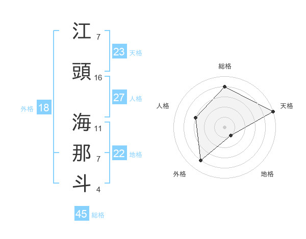 江頭 海那斗さんを姓名の画数から五運を鑑定