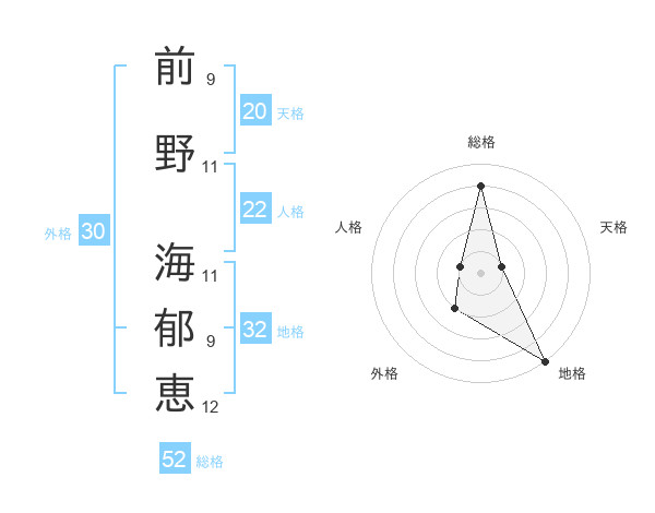 前野 海郁恵さんの総格は52画の4点!