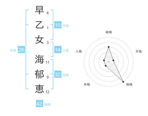 早乙女 海郁恵さんを姓名の画数から五運を鑑定