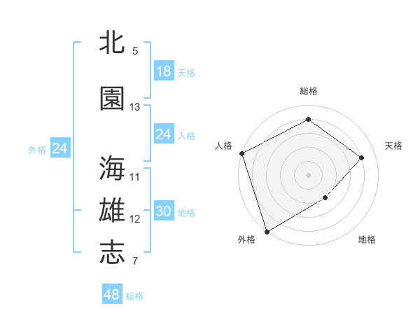 北園 海雄志さんの外格は24画の5点!