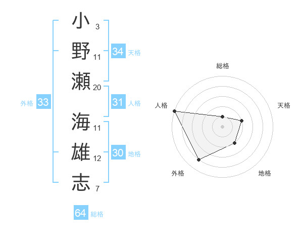 小野瀬 海雄志さんを姓名の画数から五運を鑑定