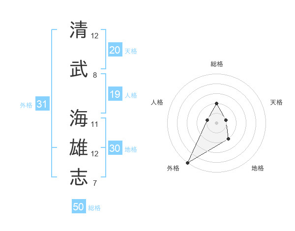 清武 海雄志さんを姓名の画数から五運を鑑定