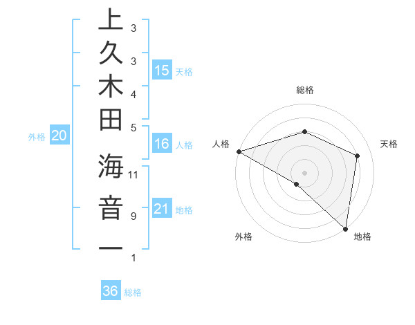上久木田 海音一さんを姓名の画数から五運を鑑定