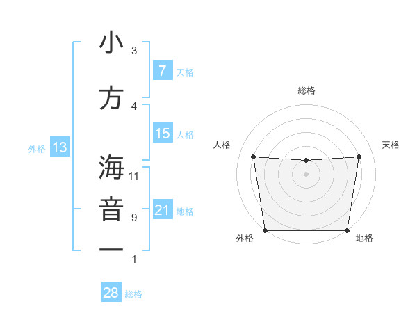 小方 海音一さんの地格は21画の5点!