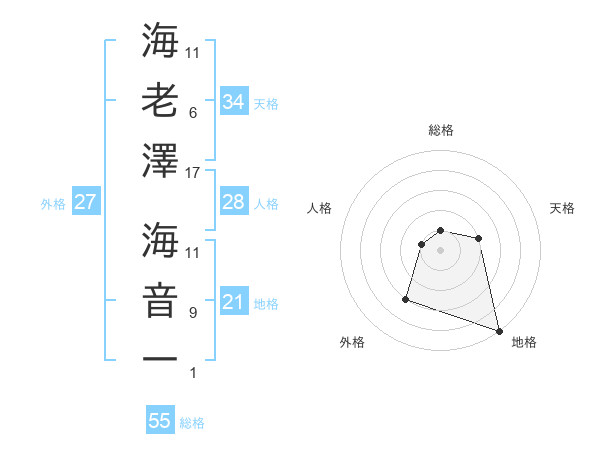 海老澤 海音一さんを姓名の画数から五運を鑑定
