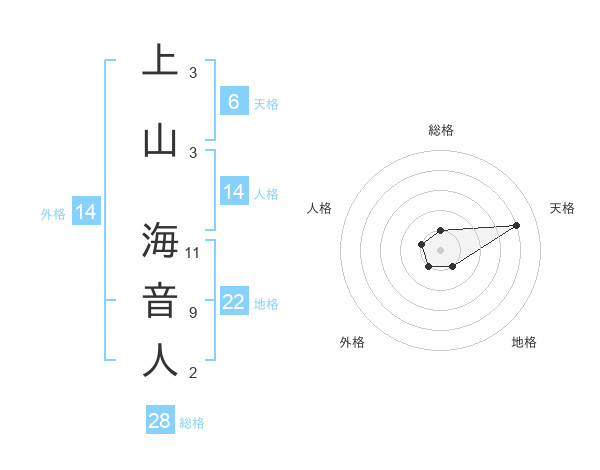 上山 海音人さんの地格は22画の1点!
