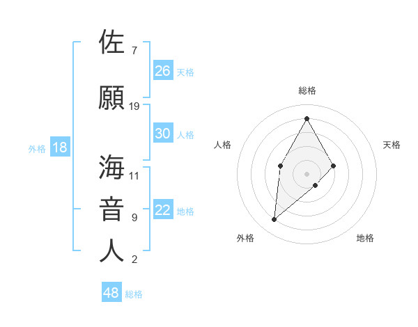 佐願 海音人さんを姓名の画数から五運を鑑定