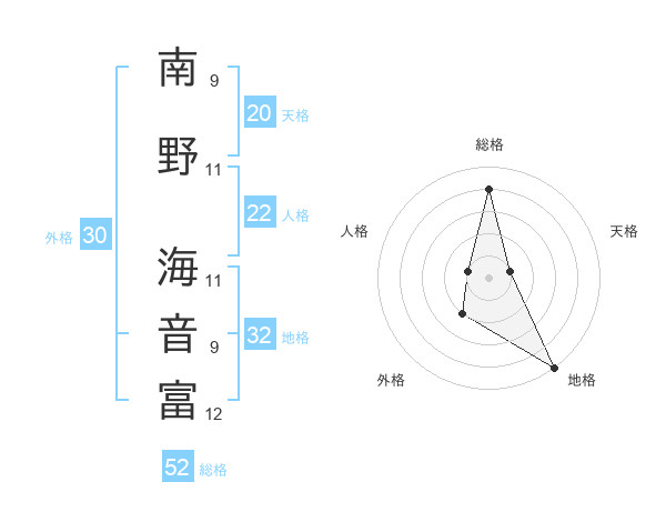 南野 海音富さんの総格は52画の4点!