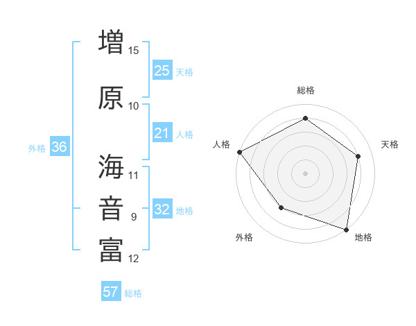 増原 海音富さんの総格は57画の4点!