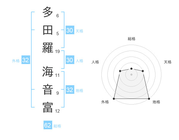 多田羅 海音富さんを姓名の画数から五運を鑑定