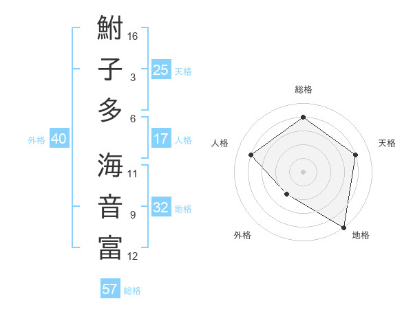 鮒子多 海音富さんを姓名の画数から五運を鑑定