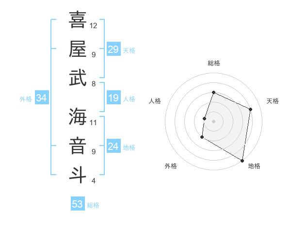 喜屋武 海音斗さんを姓名の画数から五運を鑑定