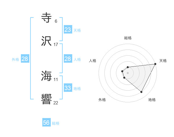 寺沢 海響さんの総格は56画の1点!