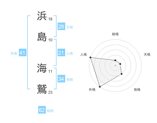 浜島 海鷲さんを姓名の画数から五運を鑑定